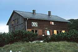 bergauf (Richtung Brunnkogel) und bald erreicht man die Rieder Hütte 1765 m.