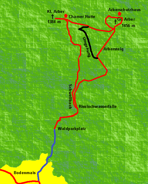 "Risslochweg" Talort: Bodenmais 689 m Bahn: Bahnverbindungen der Deutschen Bundesbahn: