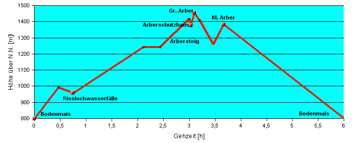 Über Wiesenwege kommt man zur Auerhahnstraße. Aufgrund des Orkan Kyrill, der in dieser Gegend viele Bäume zum Umsturz brachte, war der Arbersteig im Frühjahr 2007 gesperrt und man musste einen Umweg entlang der Auerhanstraße nehmen. Stand August 2007 ist der Steig wieder von den umgefallenen Bäumen befreit und kann uneingeschränkt begangen werden.