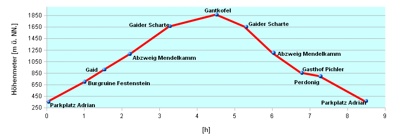 Die Tour ist bei Nebel und/oder starker Nässe nicht zu empfehlen. Bei Neuschnee ist der steile Pfad vom Abzweig Mendelkamm bis zur Gaider Scharte nicht begehbar, bei Schnee allgemein nur erfahrenen Wanderern vorbehalten. Wegenummern: Stand Sommer 2015 |