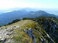 Nach einiger Zeit wird das Schwarzeck, ein Vorgipfel des Rabenkopfes, erreicht (1527m) und kurz darauf auch der Zielgipfel. Von dort hat man eine gute Sicht über die Voralpenebenen vom Kochel- bis zum Ammer- und Starnberger See. Im Westen erkennt man Jochberg, Herzogstand und weitere Gipfel des Estergebirges. Der Blick nach Osten wird von der Benediktenwand dominiert. Im Süden ergeben sich gute Blicke über Wespen- und Hirschhörnlkopf bis zum Karwendelgebirge. Der Abstieg erfolgt in Richtung Süden auf einem kurvenreichen Bergsteig. Diesem Steig bis zur Staffel-Alm folgen. Direkt vor der Alm links in einen Forstweg abbiegen. Dem Forstweg folgen und nach kurzer Zeit wiederum links in einen Bergpfad in Hanglage einschwenken. Dieser Pfad erreicht wieder den Sattel mit dem Kreuz-Denkmal. Anschließend wieder über Orterer-Alm absteigen und weiter auf dem den Anstiegsweg zurückgehen. Alternativ zur Aufstiegsroute kann man den Forstweg bis zum Dorf Ort nutzen (immer geradeaus gehen). In Ort zunächst links dann rechts schwenken und schließlich entlang der Bahnlinie Kochel-Tutzing zurück nach Kochel am See wandern |
