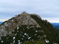 Der Weg verengt sich später zu einem Bergpfad, welcher direkt zum Bergkamm hin steil aufsteigt. Nach einer Vielzahl von Kurven und Kehren wird der Kamm, bzw. der Kammweg erreicht. Dort rechts halten und nach Osten hin zum Gipfelkreuz des Wildalpjochs (1720 m) aufsteigen. Der Weg erfordert Trittsicherheit. Über einen Zwischengipfel wird das Bergziel erreicht. Am Kamm und dem Gipfel ergeben sich gute Weitblicke in die gesamte Umgebung bis hin zum Chiemgau dem Inntal, Rosenheim, dem Kaisergebirge, Wendelstein und Mangfallgebirge. Bei sehr klarem Wetter umfasst die Sichtweite den gesamten fernen Kamm des Bayerischen Waldes (von Regensburg im Norden bis nach Passau im Osten). Zum Abstieg wird der Gipfel überquert und der Weg durch Bergwiesen zunächst ein Stück in Richtung Osten genutzt. Vom Weg biegt nach wenigen 100 Metern ein Pfad nach rechts ab. Diesen Pfad einschlagen und auf Wiesen sowie zwischen einzelnen kleinen Waldstücken und Baumgruppen weiter absteigen. Der Pfad erreicht nach einiger Zeit das Ende der Forststraße die zum Aufstieg genutzt wurde (Den Pfad könnte man auch zum Aufstieg nutzen. Er ist einfacher zu gehen als der anfangs beschriebene Anstiegsweg. Der Pfad ist in den meisten Karten nicht verzeichnet.) Ab jetzt entlang des Aufstiegswegs zum Sudelfeld, bzw. nach Bayrischzell absteigen. Die Tour umfasst etwa 975 Höhenmeter.