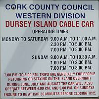 Irlands einzige Seilbahn wurde 2009 gründlich saniert und fährt nach fünfmonatiger Zwangspause wieder. Sie verbindet die Beara Halbinsel mit Dursey Island. Die Seilbahn nach Dursey Island gilt als das berühmteste Transportmittel Irlands. Seit Mitte April war der "Cable Car" über den Dursey Sound in West Cork aus Sicherheitsgründen außer Betrieb. Eigentlich sollte im Frühjahr nur die 40 Jahre alte Kabine ersetzt werden, dann allerdings stellten Ingenieure fest, dass auch die 374 Meter langen Stahlseile ausgetauscht werden mussten. So legte die Seilbahn eine knapp halbjährige Zwangspause ein. Die Seilbahn von Ballghboy, der Spitze der Beara Peninsula, auf die vorgelagerte Insel Oileán Baoi, oder Dursey, wird gerne in Superlativen beschrieben: Es ist nicht nur die einzige Seilbahn Irlands, sondern auch die einzige in ganz Europa, die über Wasser führt. Die Bahn wird seit 1969 von Paddy Sheehan betrieben und versorgt die (zuletzt noch sieben ständigen) Bewohner der Insel. Besucher der wild-romantischen Insel Dursey erleben die Überfahrt mit der kleinen Seilbahn als besonderes Erlebnis. Touristen sind willkommen und werden genauso befördert wie Inselbewohner, Waren und das liebe Vieh. Die Seilbahn kann sechs Fahrgäste, zehn Schafe oder eine Kuh transportieren. Wer kein Pub, kein Restaurant und keinen Laden erwartet, sollte sich einen halben Tag auf Dursey gönnen. Vor allem Vogel- und Naturliebhaber kommen dort auf ihre Kosten, auf der Insel brüten zahlreiche Seevögel. Der Trip mit der Seilbahn bietet sich auch für alle Wanderer des Beara Way an, sozusagen als Belohnung, das Ende, oder den Wendepunkt des landschaftlich einmaligen Fernwanderwegs erreicht zu haben. Die