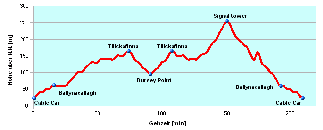 Länge 14 km Gesamte Gehzeit mit Abstecher zum Dursey Head 3,5 h Höhendifferenz im Aufstieg: 300 Hm |