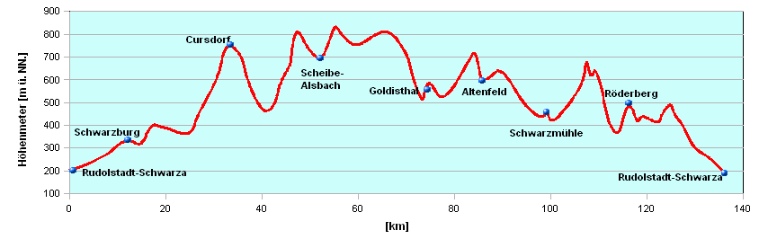 - Schwarzburg Plateau (16,8 km) 409 Höhenmeter im Anstieg.