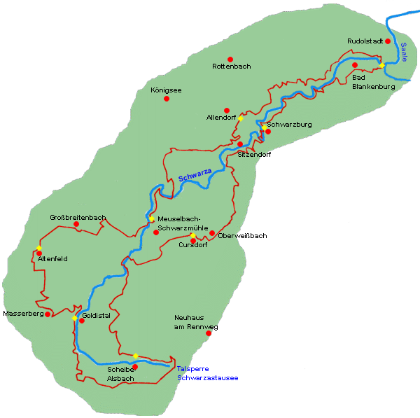 Allendorf - Mündung der Schwarza in Rudolstadt-Schwarza (19,2 km) 398 Höhenmeter im Anstieg |