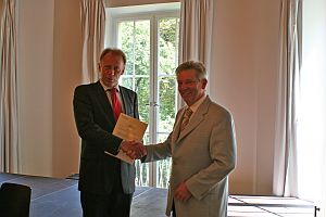 Josef Klenner, Präsident des DAV, nahm im Rahmen einer Pressekonferenz im Alpinen Museum des DAV die Urkunde aus den Händen von Bundesumweltminister Jürgen Trittin