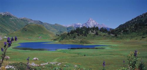 Bezaubernd und gemütlich ist der kleine Walserort Warth in Vorarlberg, auf 1500 Meter gelegen, an der Grenze zum Tiroler Lechtal, dem Bregenzerwald und Lech am Arlberg, zentral und trotzdem fern von Trubel und Hektik. Bregenz am Bodensee und die Königsschlösser sind nur eine Autostunde entfernt. Durch die markanten Gipfel, den zahlreichen Wanderrouten mit Kletter- und Tourenmöglichkeiten, bewirtschaftete Schutzhütten und zauberhaften Bergseen und einer einzigartigen Alpenflora ein Traum für Naturliebhaber. Das abwechslungsreiche Aktiv-Programm unter professioneller Führung - wie geführte Wander- und Bergtouren, Canyoning, Tunnelexpedition, Short Kick, Mountainbike-Touren, Rafting und Klettern an der "Ostwand" für Groß und Klein finden wöchentlich statt. Aktive Erholungsuchende geraten hier so richtig ins schwärmen. Ohne große Anstrengung gelangen Sie mit den Bahnen auch im Sommer zu den herrlichsten Aussichtspunkten. Die Orts- und Wanderbusse verkehren ½ stündlich zwischen den verschiedenen Ortsteilen nach Lech, zum Spuller- und Formarinsee im Lechquellengebirge.